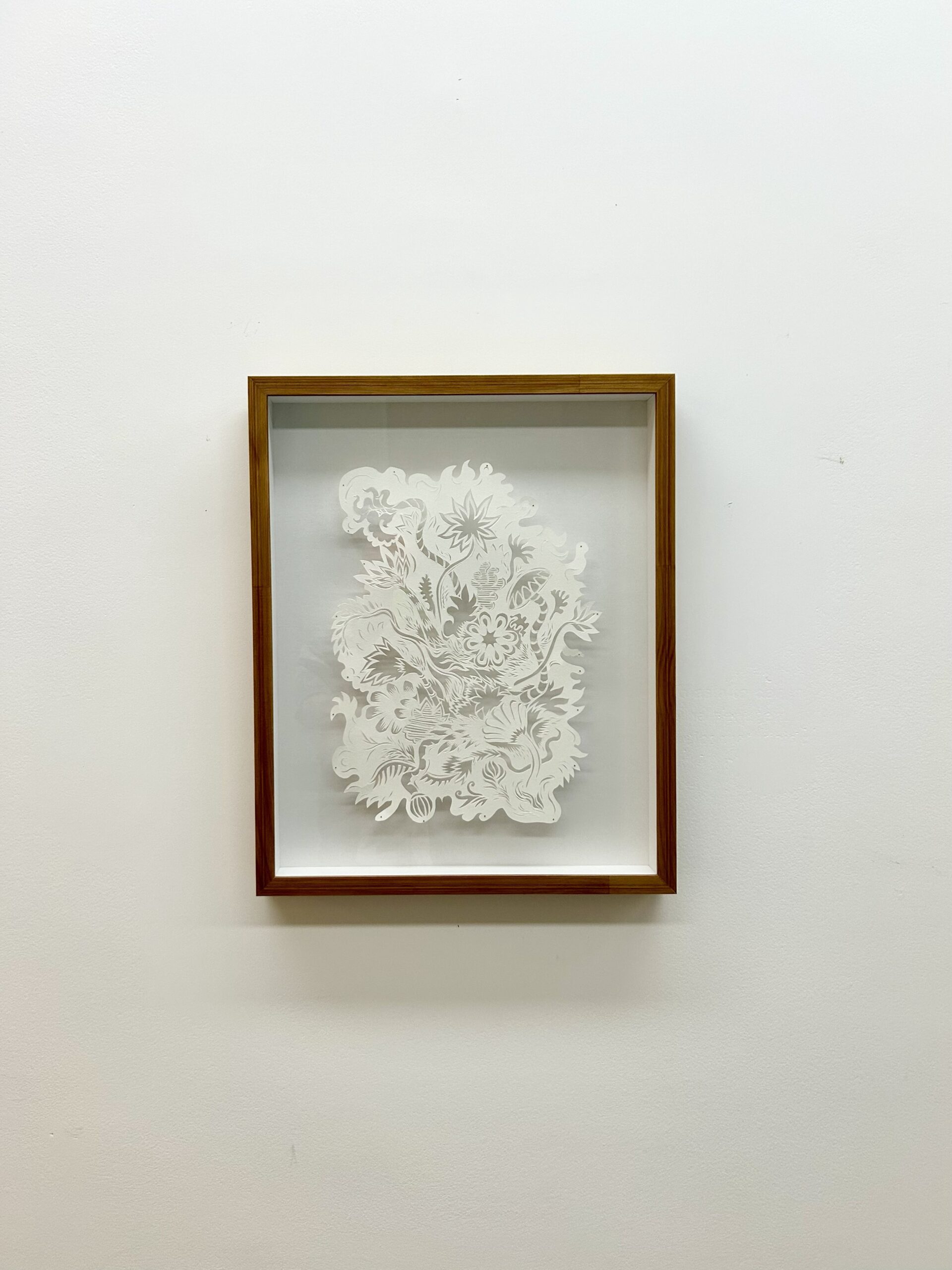 Instalação | Papel de aquarela recortado montado com alfinetes sobre a parede | Dimensões variáveis